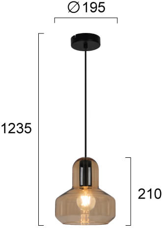 A modern pendant featuring three amber glass shades suspended from a sleek black frame. The warm glass tones create an inviting glow, making it ideal for dining areas, reception spaces, and lounges where atmosphere and style are key.