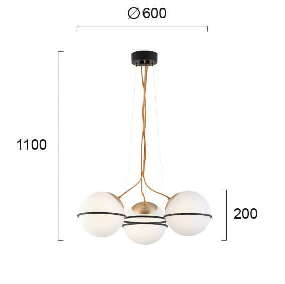 A modern 3 light pendant that blends sleek metalwork with a smooth opal glass diffuser, creating a warm and inviting glow. The combination of a black finish with gold detailing adds a touch of sophistication, making it an ideal choice for both contemporary and transitional interiors.