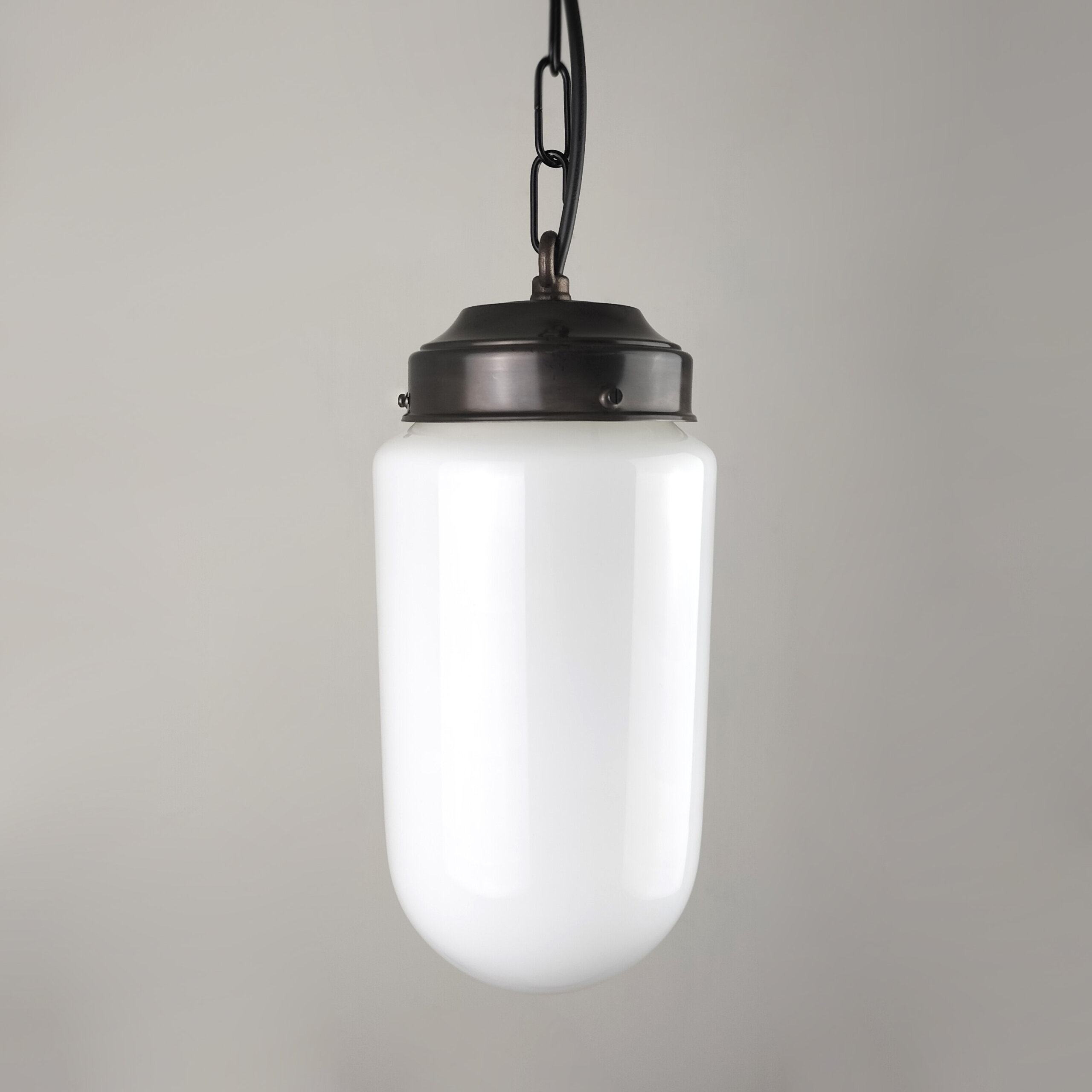 This opaline style glass gives off a diffused glow, making it the perfect choice for an elegant statement piece that warms a space.